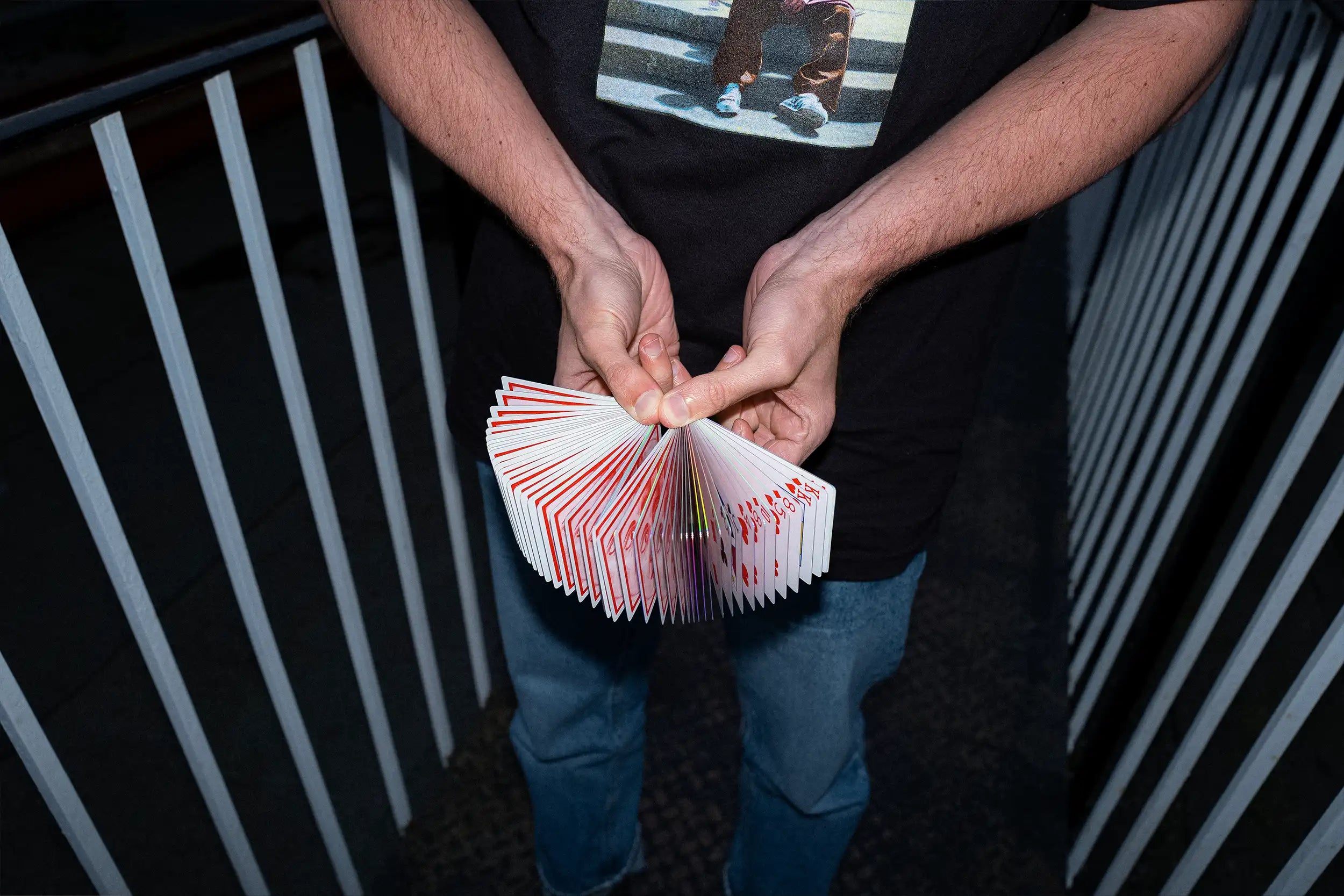 Certain playing card manufacturers offer great print registration, but the stock clumps up quickly — after a day or so in some cases. We hate that.